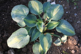 Übersicht blaulaubige Hosta mitgelber Mitte